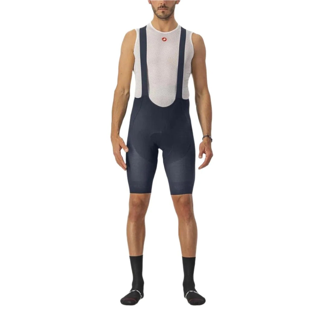 We’ve been pushing the envelope on lightweight shorts since 2011 but have butted up against the limits of compromising durability for ever lighter weight. We needed to step back and find a better way. We examined what the short really needs to do: it needs to hold the seat pad securely in place while otherwise adding as little weight or fabric as absolutely necessary (without being transparent, obviously), and it needs to last a season of hard use. So we engineered a brand-new fabric using a woven rather than a knit that shaves 30% in weight for the same level of support and non-transparency. Then we worked with the world’s leading mill to construct a gradient fabric that becomes increasingly lighter the farther down the leg it extends, with the last part weighing a mere 90 g/m2 compared to normal short fabric, which weighs around 220 g/m2. This fabric, while being insanely light, maintains a decent durability along with excellent abrasion resistance, at least against the saddle. We don’t guarantee it against unplanned slides across the asphalt, so please keep the rubber side down! Note that while the short saves a mere 48 grams while dry, this means it also absorbs around 30% less moisture when you’re sweating. So when you’re sweating your way up the Alpe d’Huez you’re actually saving closer to 150 grams. This short doesn’t compromise on comfort. We use our top Progetto X2 Air Seamless seat pad, the spectacular striped mesh bibs from the Free Aero Race 4 Bibshort and a flat stretch woven leg gripper to keep everything in place. But it’s the finishing that sets this short apart. The logos are embossed into the surface of the fabric for a very discreet rich tone-on-tone effect. With this short you don’t need brightly colored logos to shout out that you’ve achieved the ultimate in cycling comfort and performance.